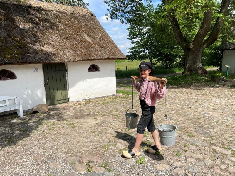 De møder den sønderjyske bondekone Maren, der sætter eleverne i arbejde med at tærske og male korn, samt hjælpe hende med at slå brødet op. De får også lov at smage på hendes rugbrød.- OBS: Forløbet foregår udendørs. Eleverne deles i 5 grupper.